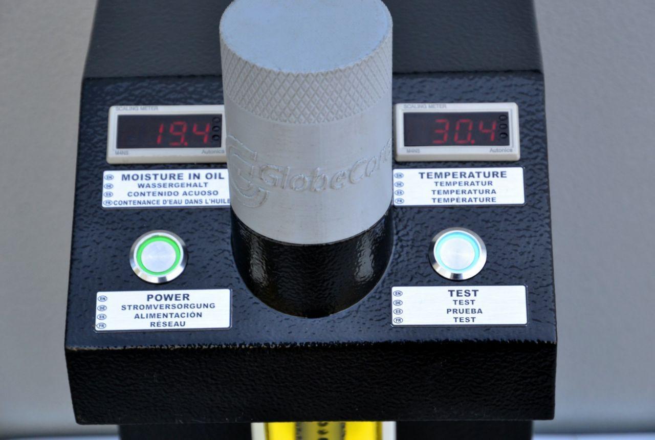 - it can be used for oil testing in the field near the transformer due to a sufficient degree of protection (metal vandal-resistant buttons, sensitive element protection, integrated protection of electrical equipment) and a stabilized power supply;